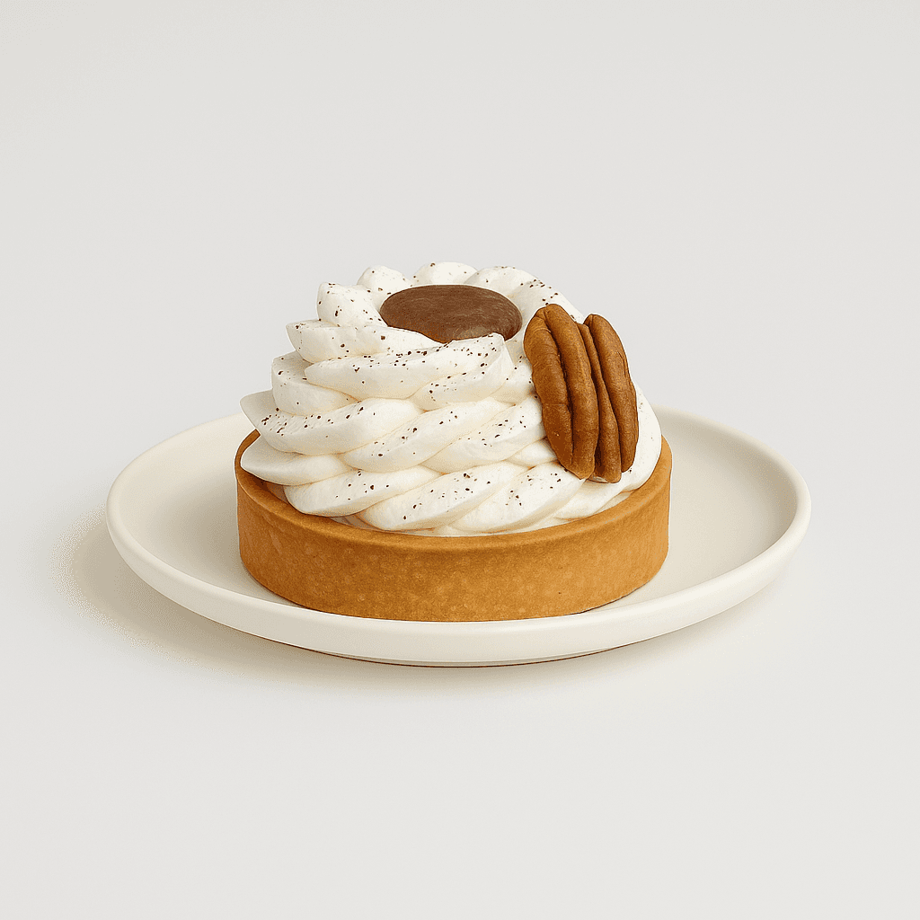 Pâte sablée vanille, crème amande, croustillant pistache, crémeux